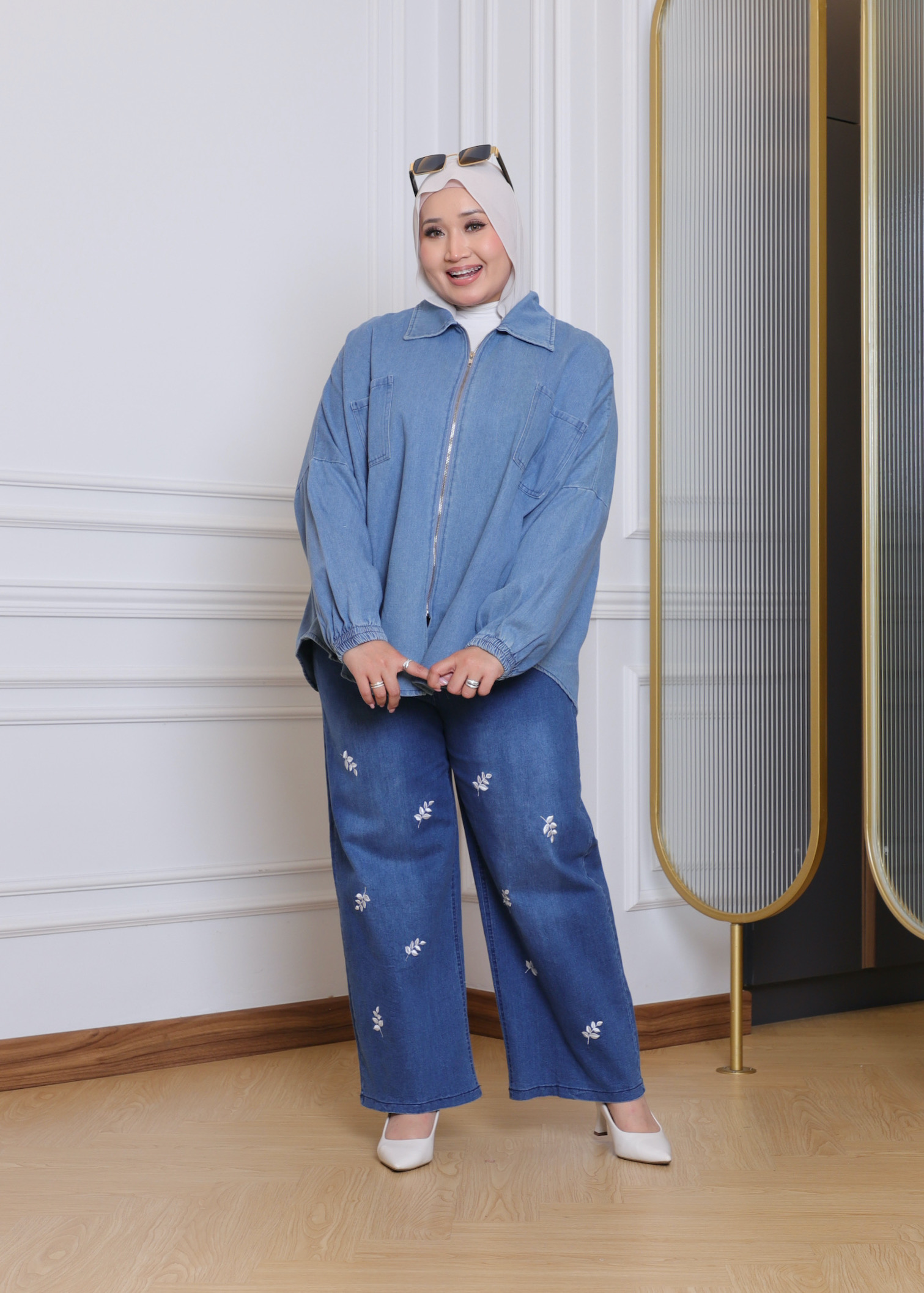 Batwing Zip Denim Shirt