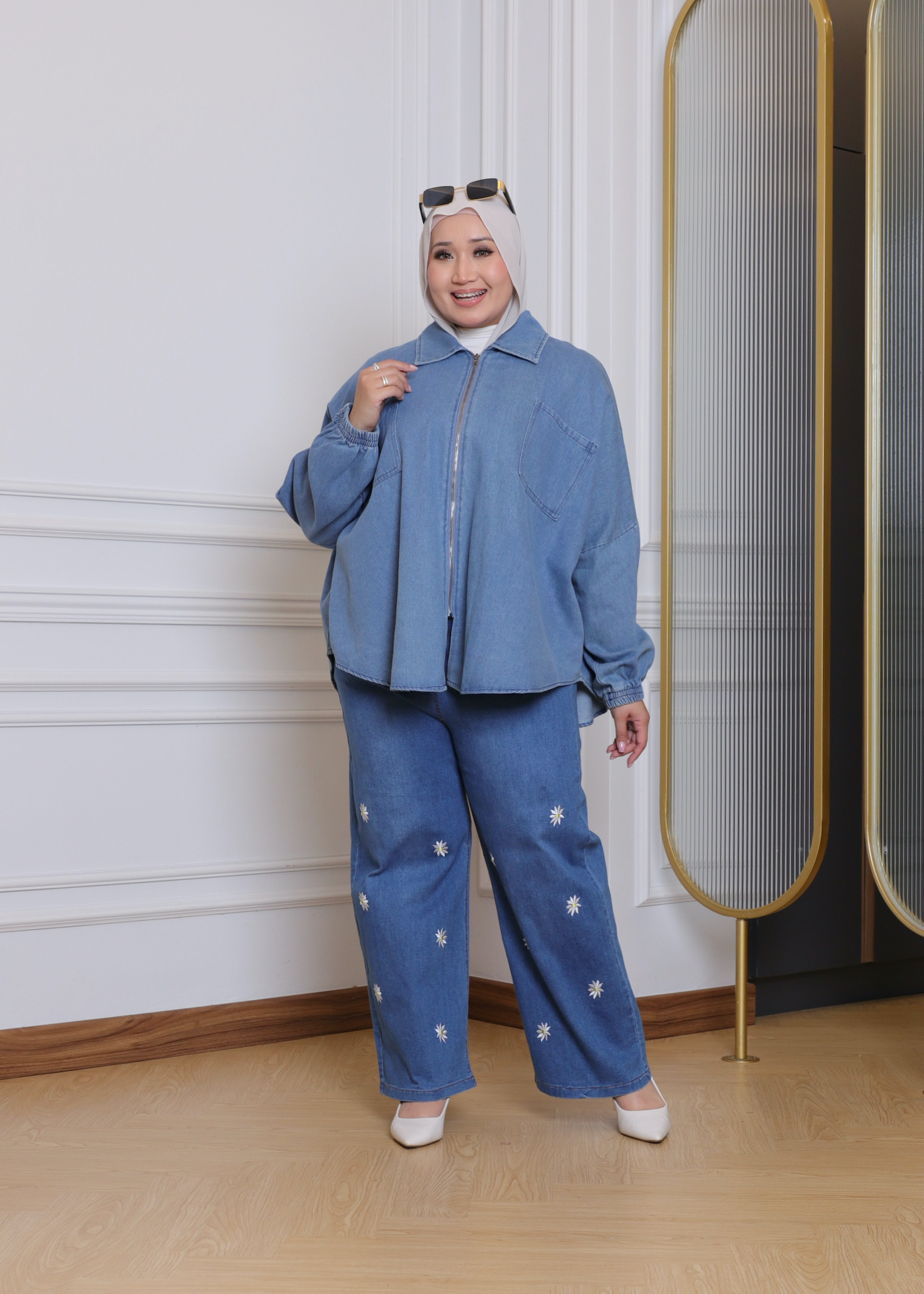 Batwing Zip Denim Shirt