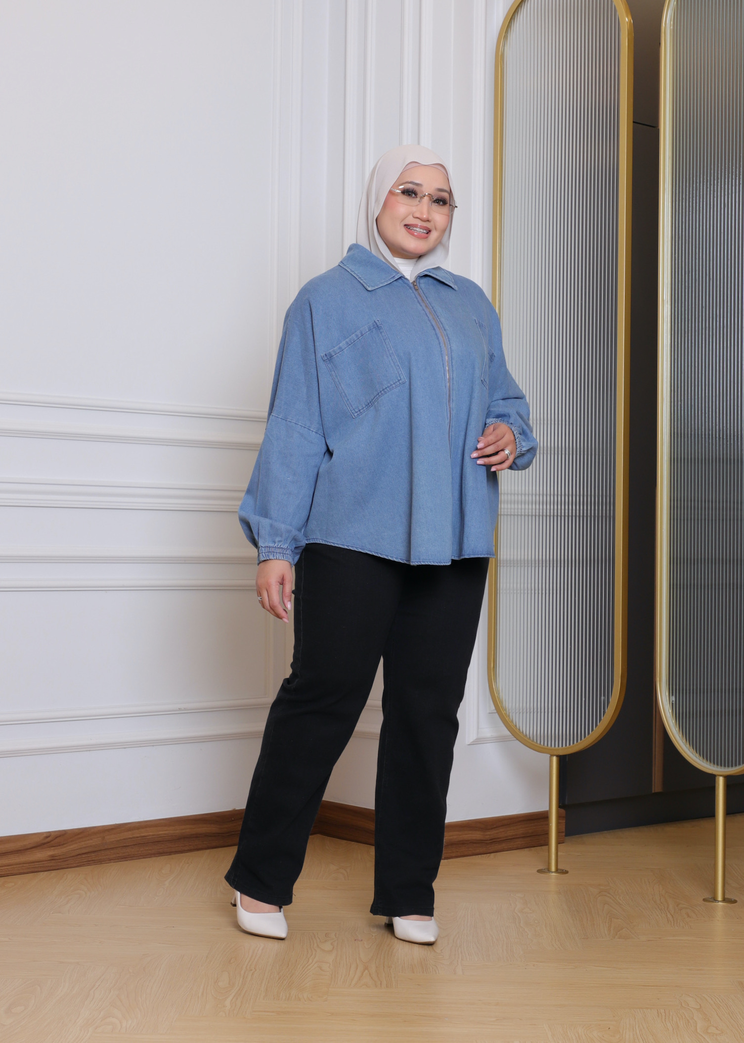 Batwing Zip Denim Shirt